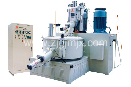 高速混合機熱混的攪拌漿,由電機經三角帶輪來驅動。電機是交流雙速電機,只要按下低、高速按鈕,即可實現低高速。但必須注意:若要高速運轉時,應使電機先低速啟動后,再變到高速運轉。主軸由軸承支承運轉。主軸上部有三個攪拌漿,它按順時針方向旋轉,使物料一方面沿鍋壁運動,又同時上下循環翻動,加上導流板的作用,使混合效果更好。由于物料是高速運動的,所以料粒之間,料與漿葉之間的摩擦熱很大,它使料溫迅速上升,不僅相應地減少了鍋壁的加熱量,而且有利于樹脂對增塑劑的吸收效果。攪拌漿是不銹鋼制造的,以經仔細地機械加工,拋光,耐磨,耐腐蝕。冷混的傳動部分由啟動電機經三角帶輪來驅動,通過減速箱傳遞到主軸,使攪拌槳旋轉,使熱混物料冷卻混合。底座由鋼板、角鋼、槽鋼焊接而成,兩側有四只起重吊環,吊裝極為方便,并設有調節手柄,可調節傳動三角膠帶緊松,底部有八只地腳螺栓孔,打開門蓋可以更換三角膠帶和安裝機座固定及維修,保養之用。