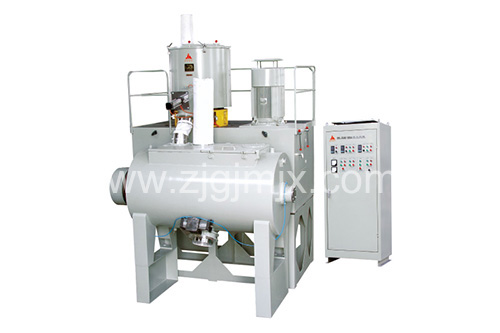 電控箱為立式的,與混合機(jī)分開,電箱面上裝有電加熱電流表,加熱溫度,物料溫度,冷混溫度指示,混合機(jī)的啟動(dòng)、停止按鈕、卸料門的開啟,關(guān)閉等按鈕。